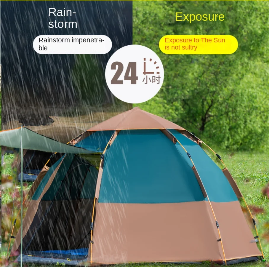 Automatic Tent for Outdoor Camping Quick Open Tent Hexagonal Rainproof Travel Beach Equipment Supplies 5-8 People