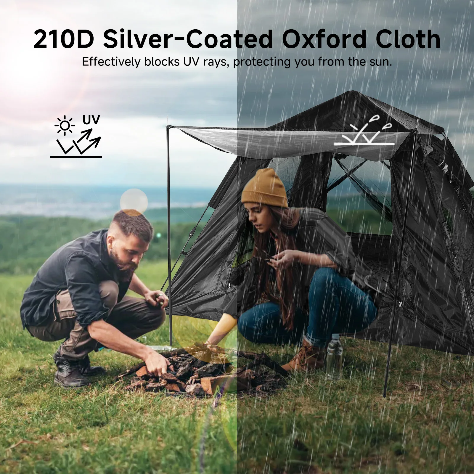 Camping Tent Sun Protection Waterproof Pop Up 3-4 Person Silver Coated Oxford Cloth Automatic Setup Canopy with Mosquito Netting