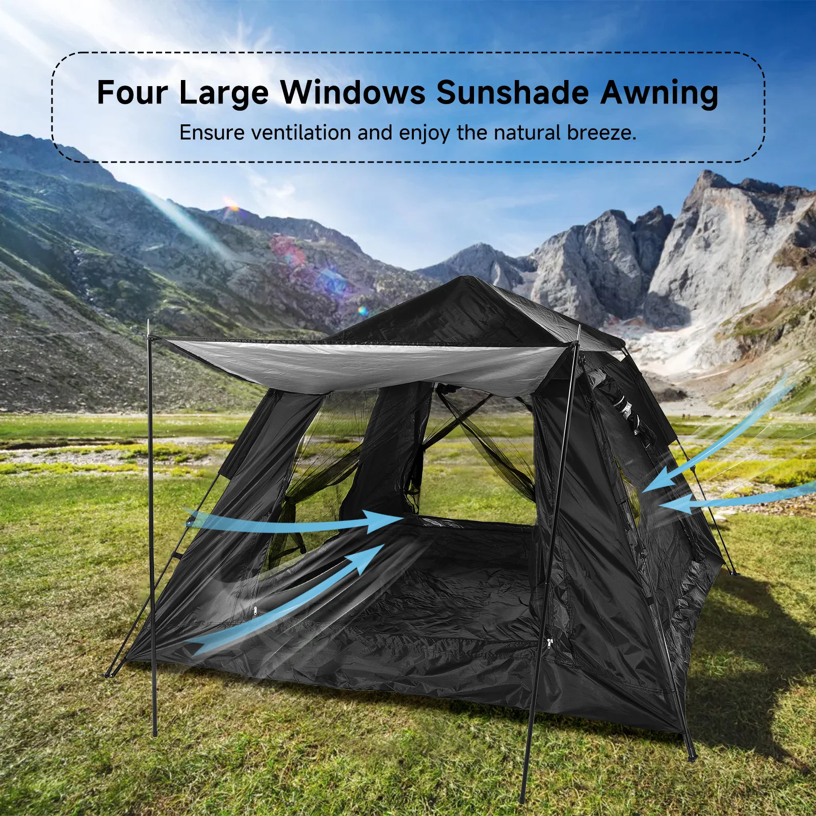 Automatic Quick Open Tent with Canopy Portable Outdoor Rain/Sun Proof Tent for Family Travel Self-drive Camping 3-4/4-6 People