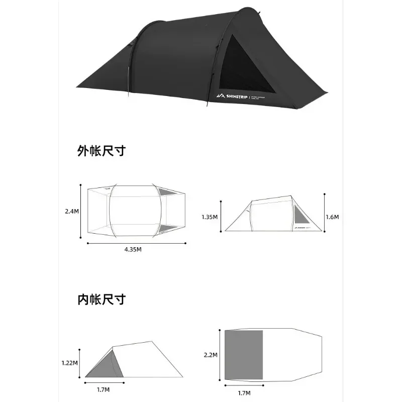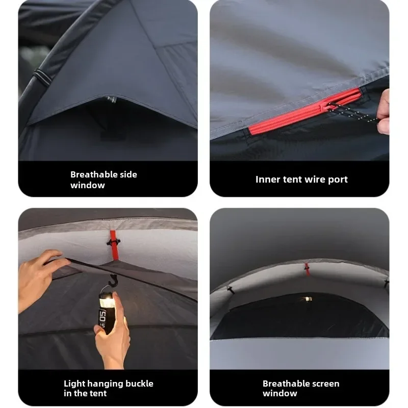 New Motorcycle Camping Tunnel Tent 2 Room Tents for Camping Waterproof and UV Protection 150D Oxford Cloth Detachable Inner Tent