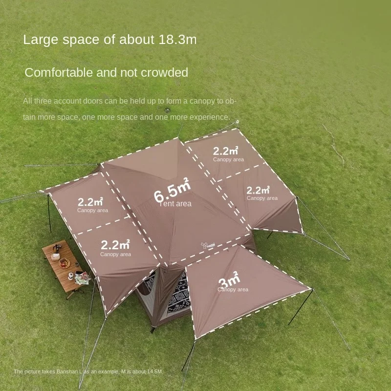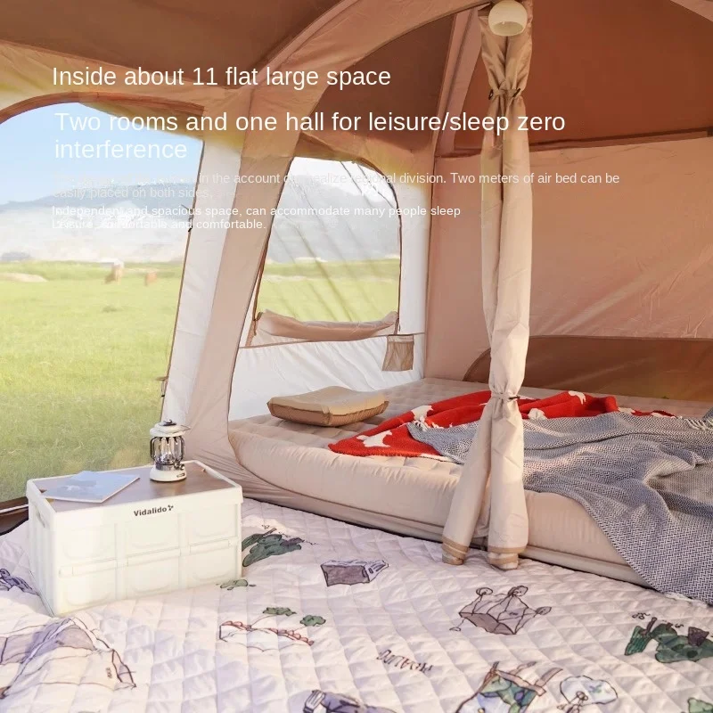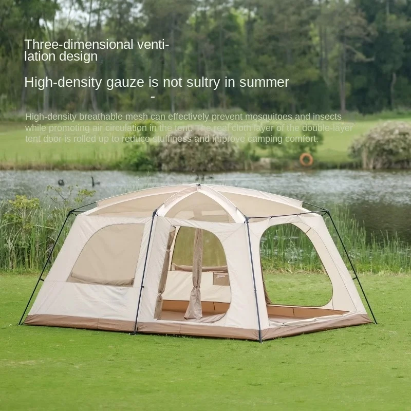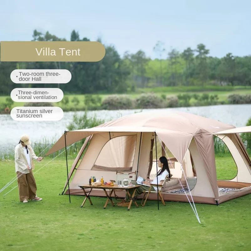 Outdoor Camping Villa Tent Portable Folding Tent 2 Bedrooms 1 Living Room Three Door Waterproof Cabin Tent 4-8P